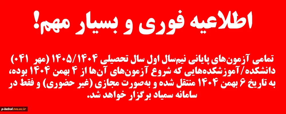 امتحانات پایان ترم مهر 1404 بصورت مجازی( غیر حضوری)برگزار خواهد شد. 2